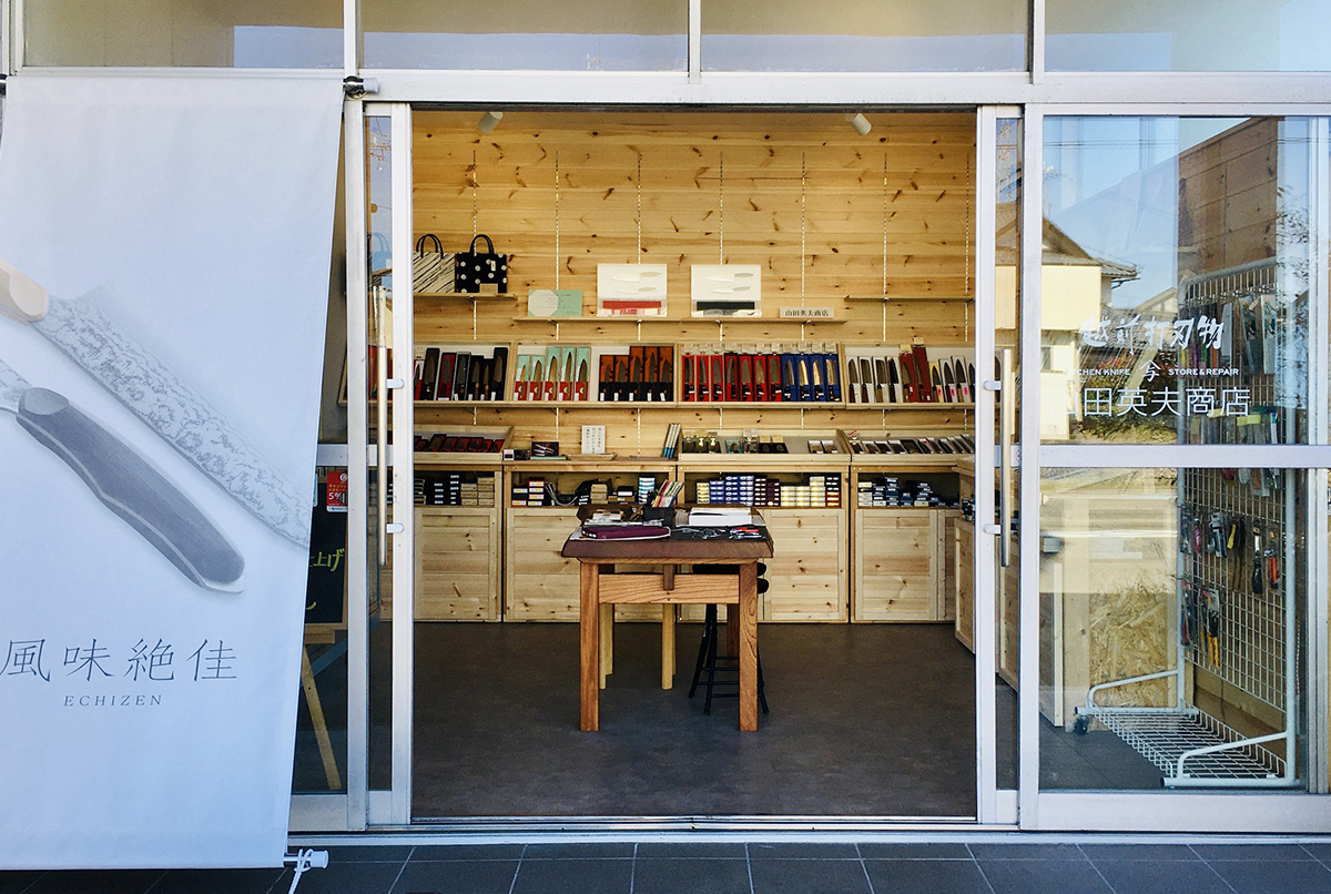 700年の伝統を持つ越前打刃物の産地で、私たちは職人が仕上げた包丁に、柄を付け、ヒズミの調整や名入れをし、商品に仕上げる問屋の仕事をしてきました。より使い心地のいい包丁をお客様に提案したいと考え、2015年(平成27年)に「風味絶佳ECHIZEN」という自社ブランドを立ち上げました。職人が一本一本削りだす流線形のグリップは手によくなじみ、最高の切れ味でお料理を楽しくさせてくれます。