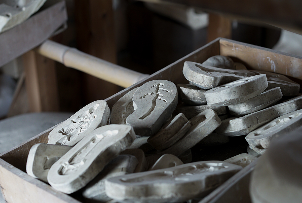 排泥鋳込み技法の体験を行なっていただけます。石膏型を組んで泥しょうを流し込むところから、釉薬を掛けるまで、製品が実際に出来るまでの工程を体験していただきます。 歴代制作されてきた、通常非公開の型もご覧いただけます。