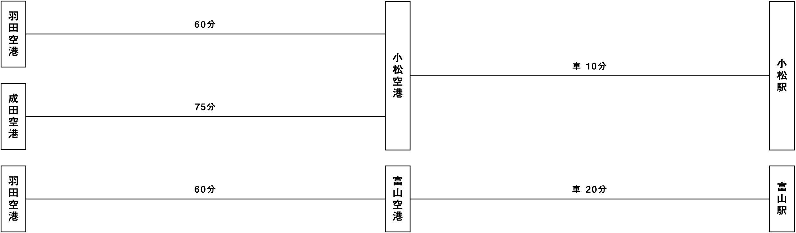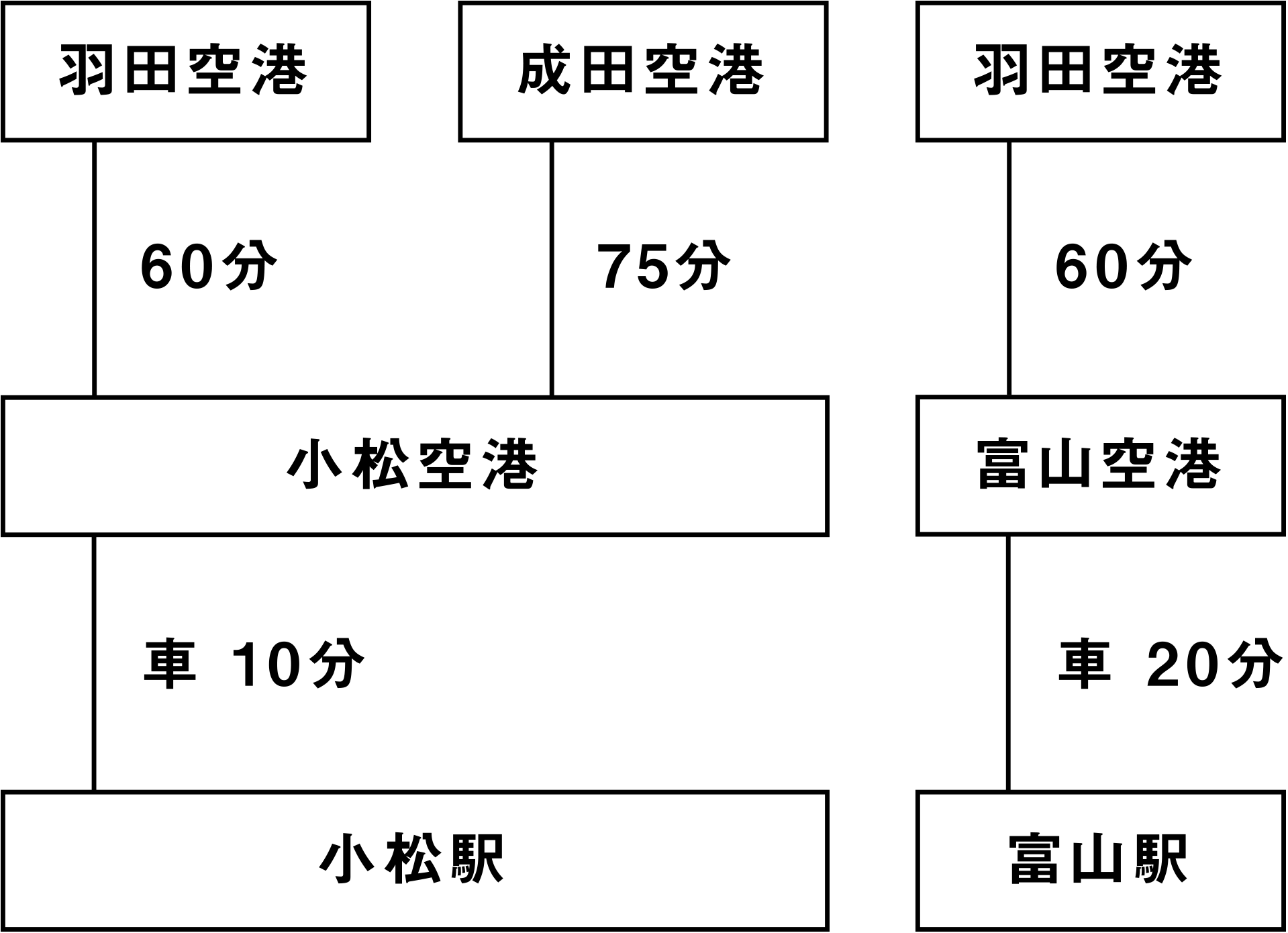 主要都市から富山、高岡、金沢、能美、小松、越前、鯖江への移動時間の目安です。
